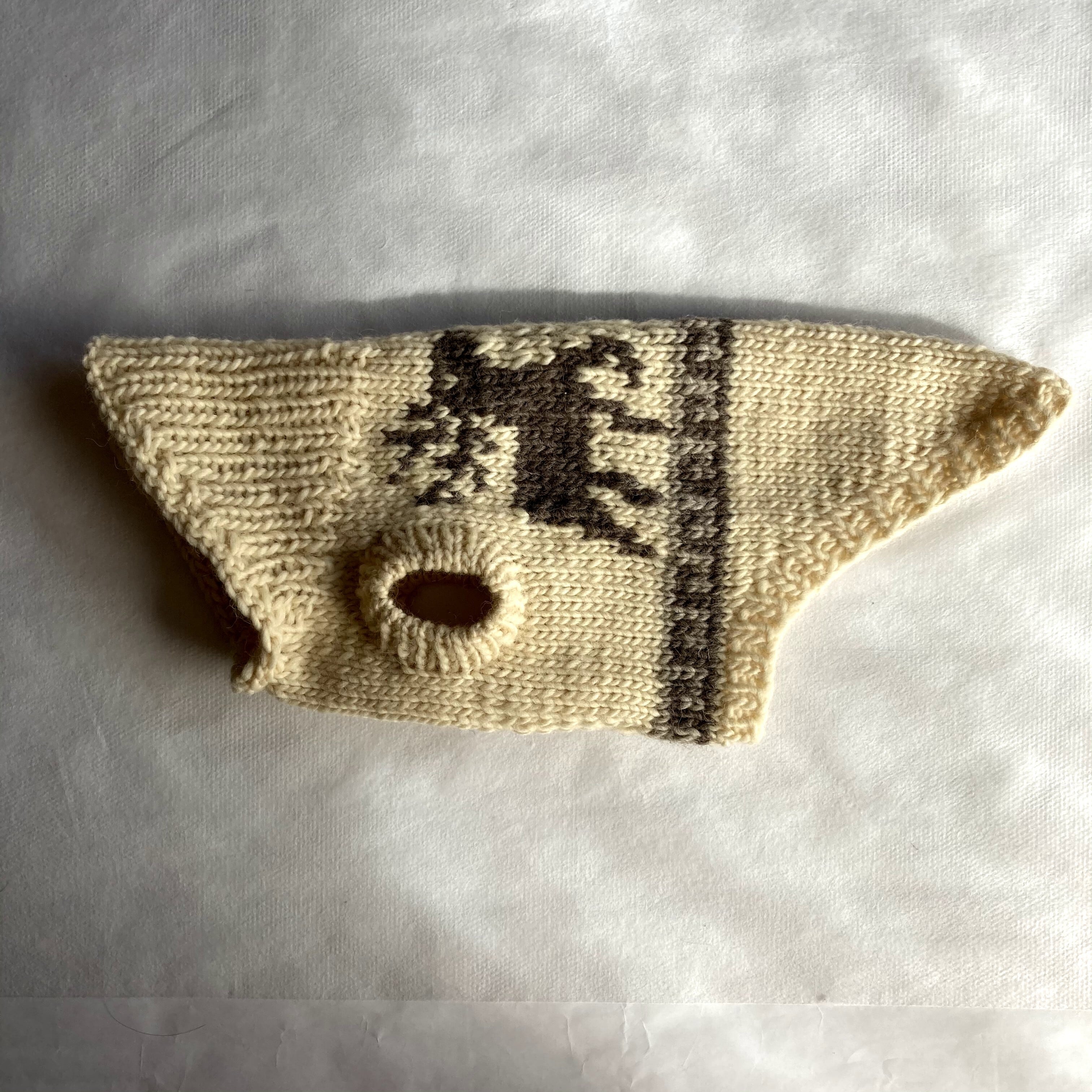 太糸ならではのざっくり感と、伝統柄のトナカイを背負って、ちょっとワイルドなイメージに仕上げました。
