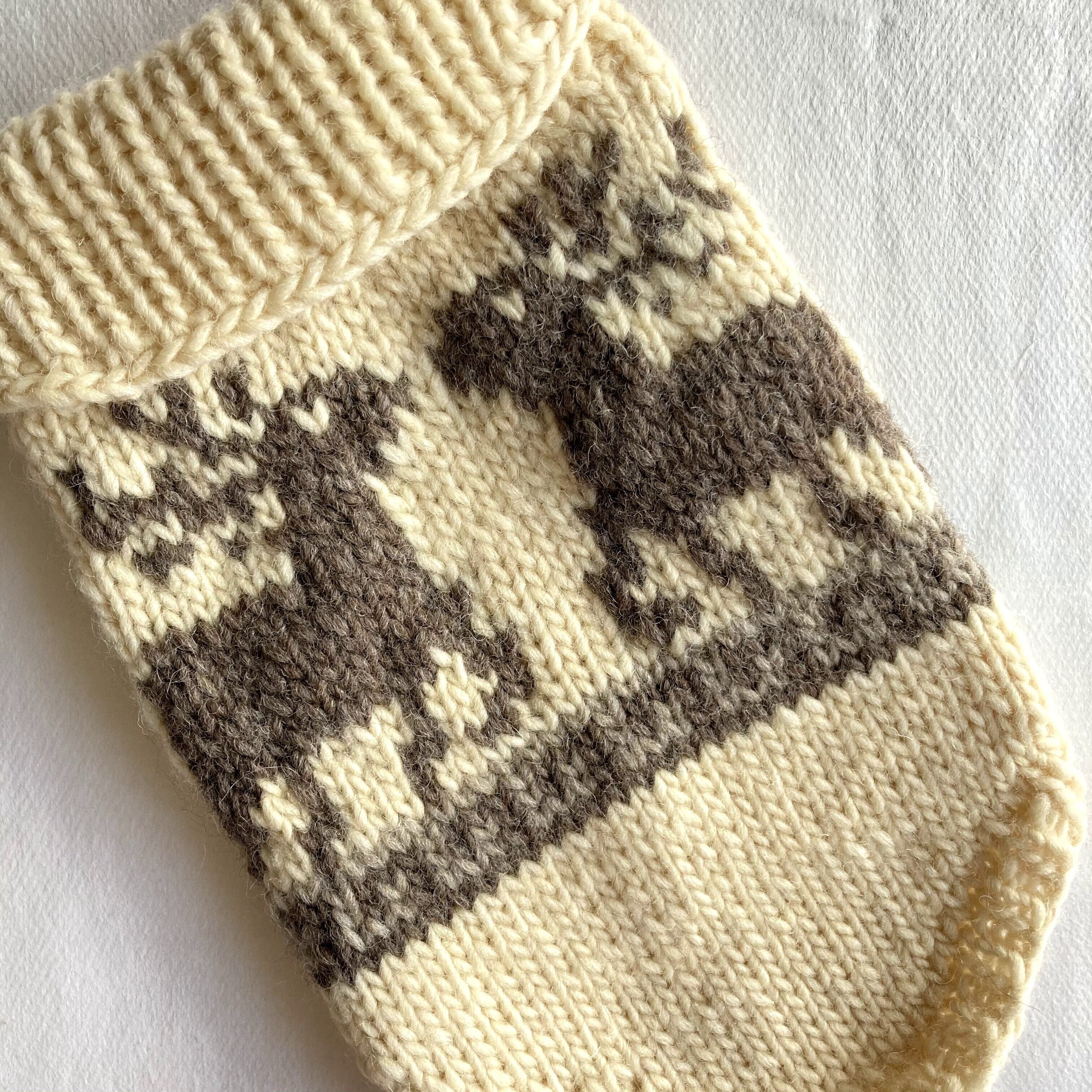 太糸ならではのざっくり感と、伝統柄のトナカイを背負って、ちょっとワイルドなイメージに仕上げました。