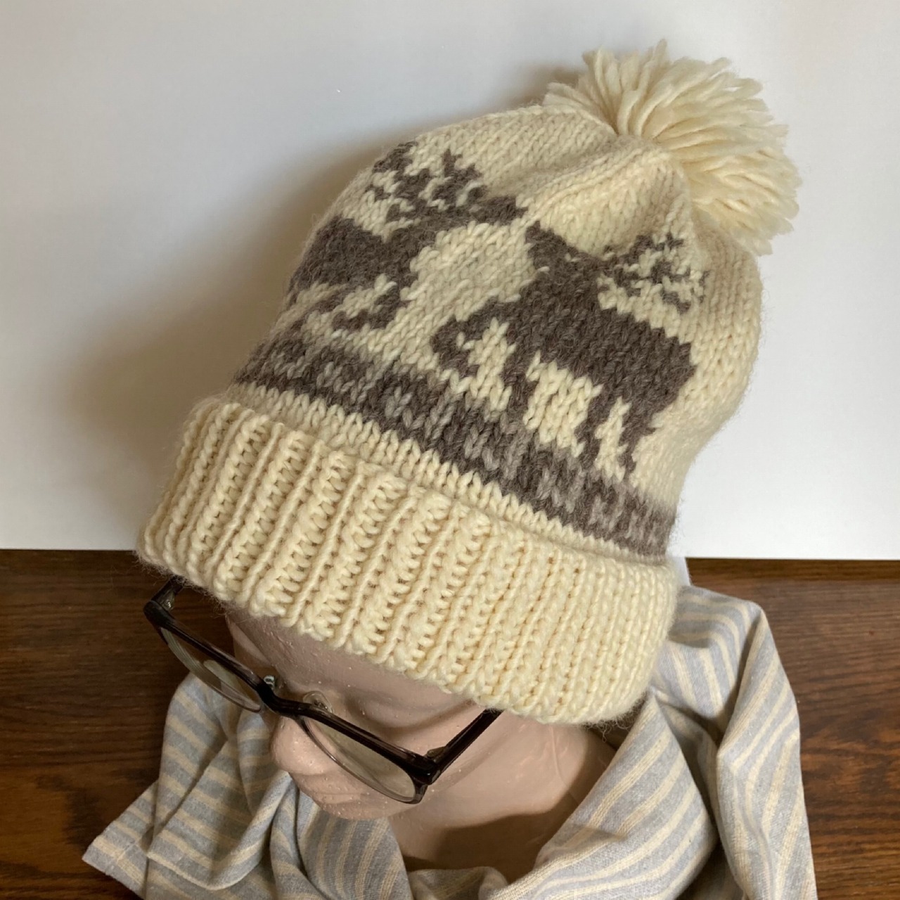 ニット帽:カウチンニット:トナカイのニット帽(大)