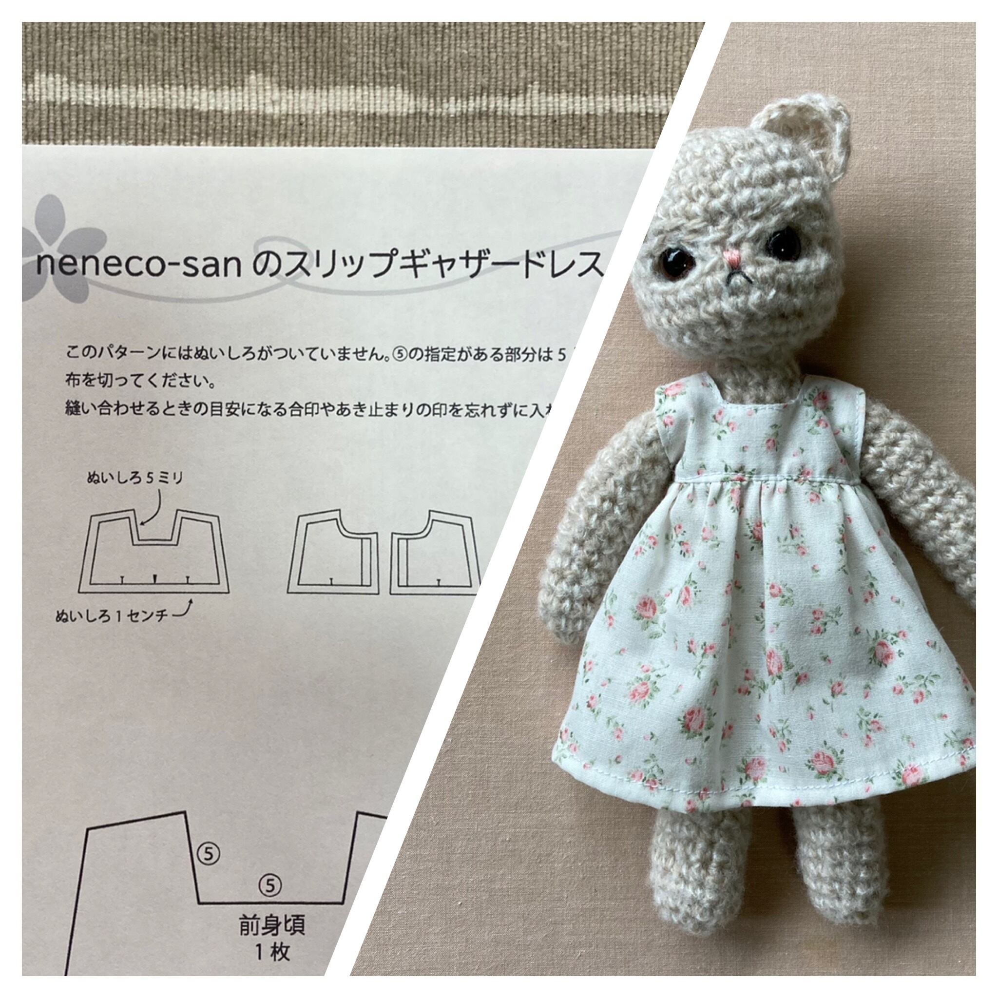 実物大のパターンと作り方の説明書です。材料、ねねこさんは入っていません。お好きな生地をご用意ください。