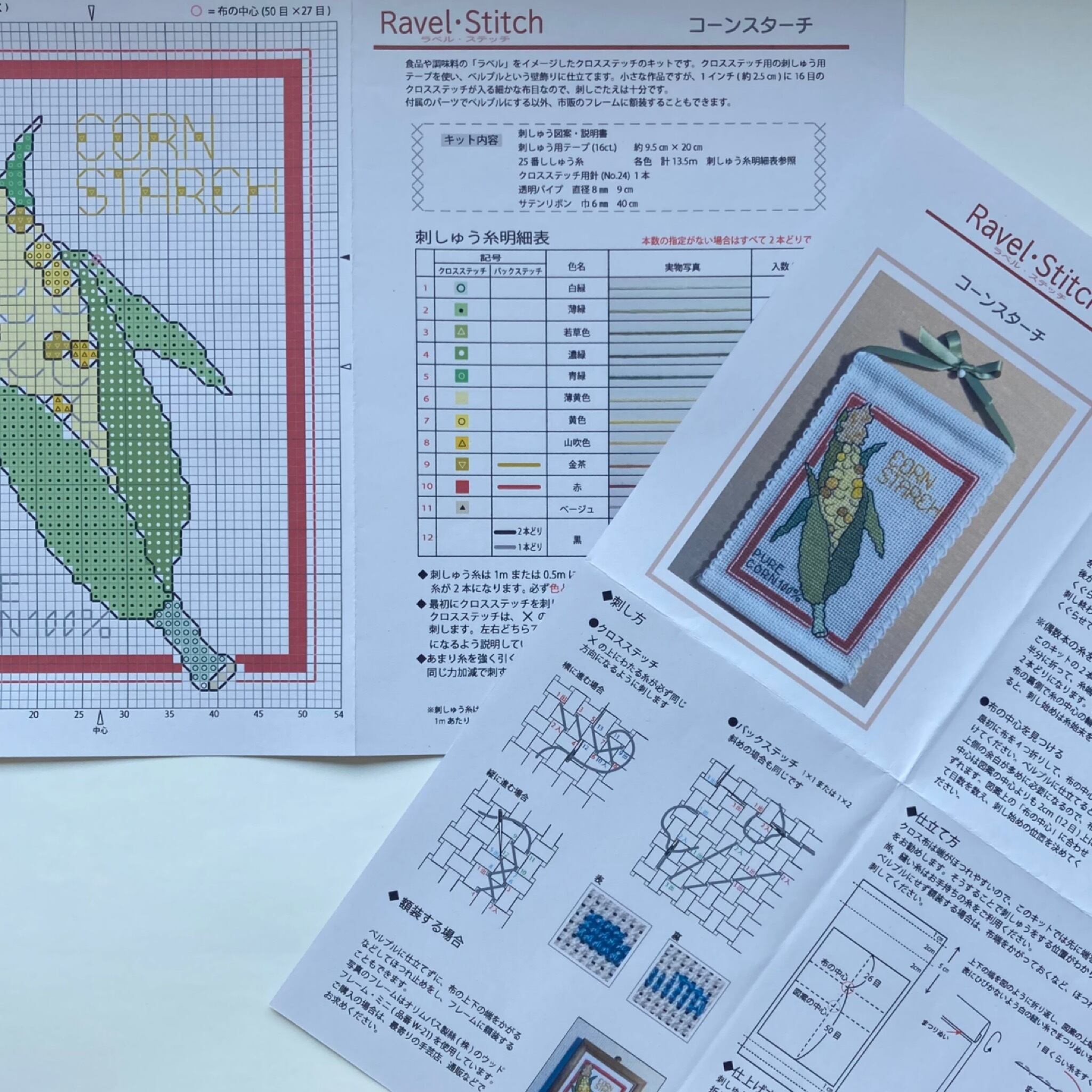 食品や調味料の「ラベル」をテーマにデザインした、クロスステッチのししゅうキットです。