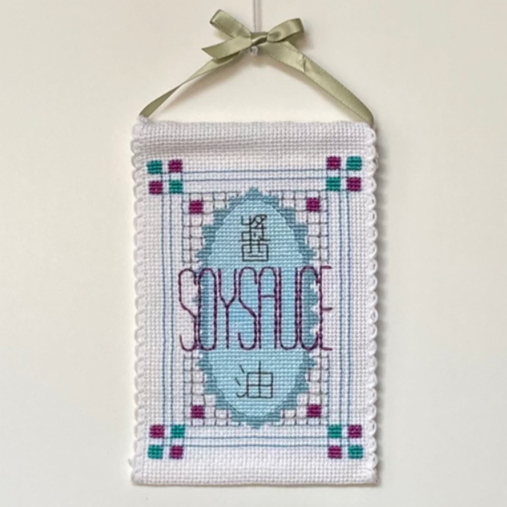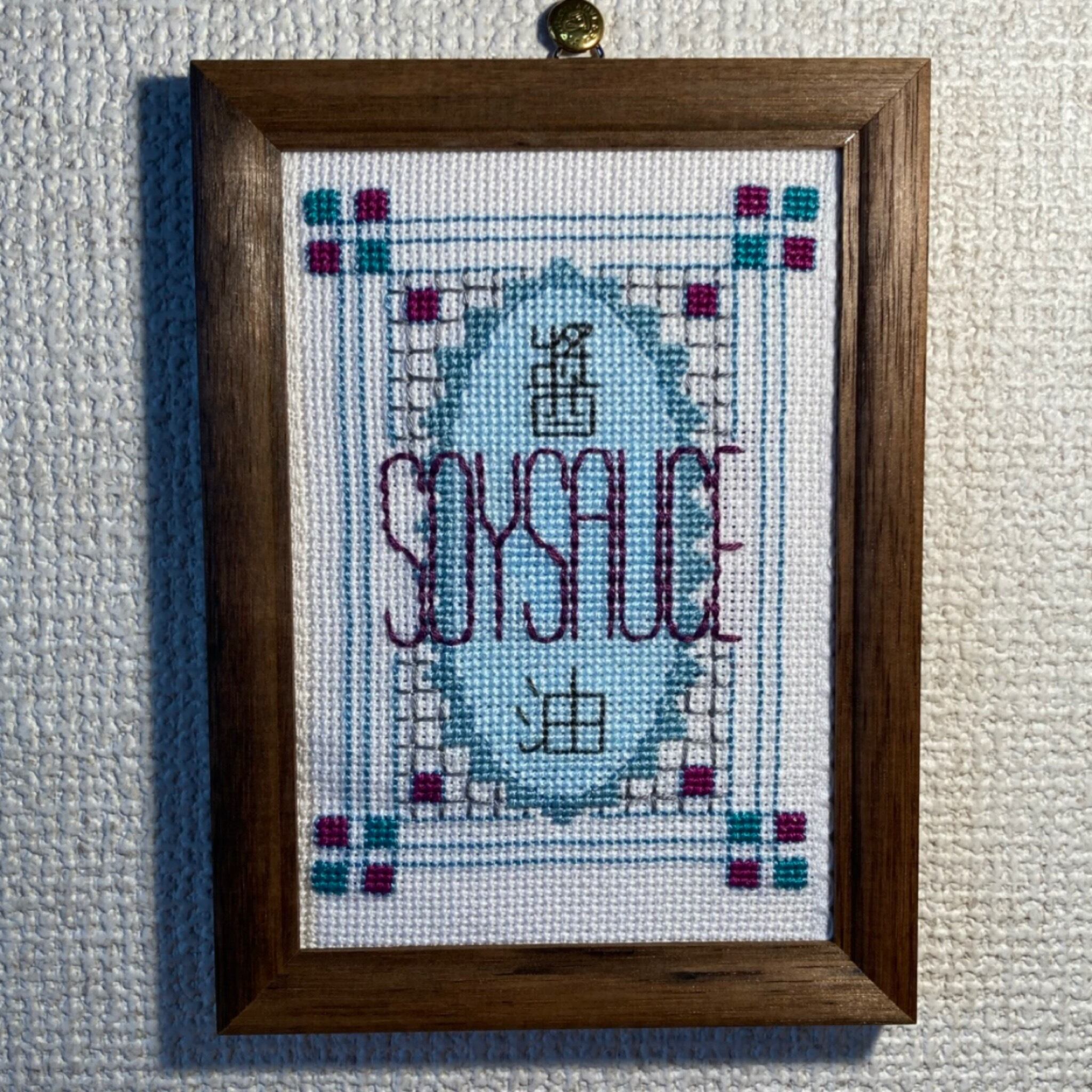 食品や調味料の「ラベル」をテーマにデザインした、クロスステッチのししゅうキットです。