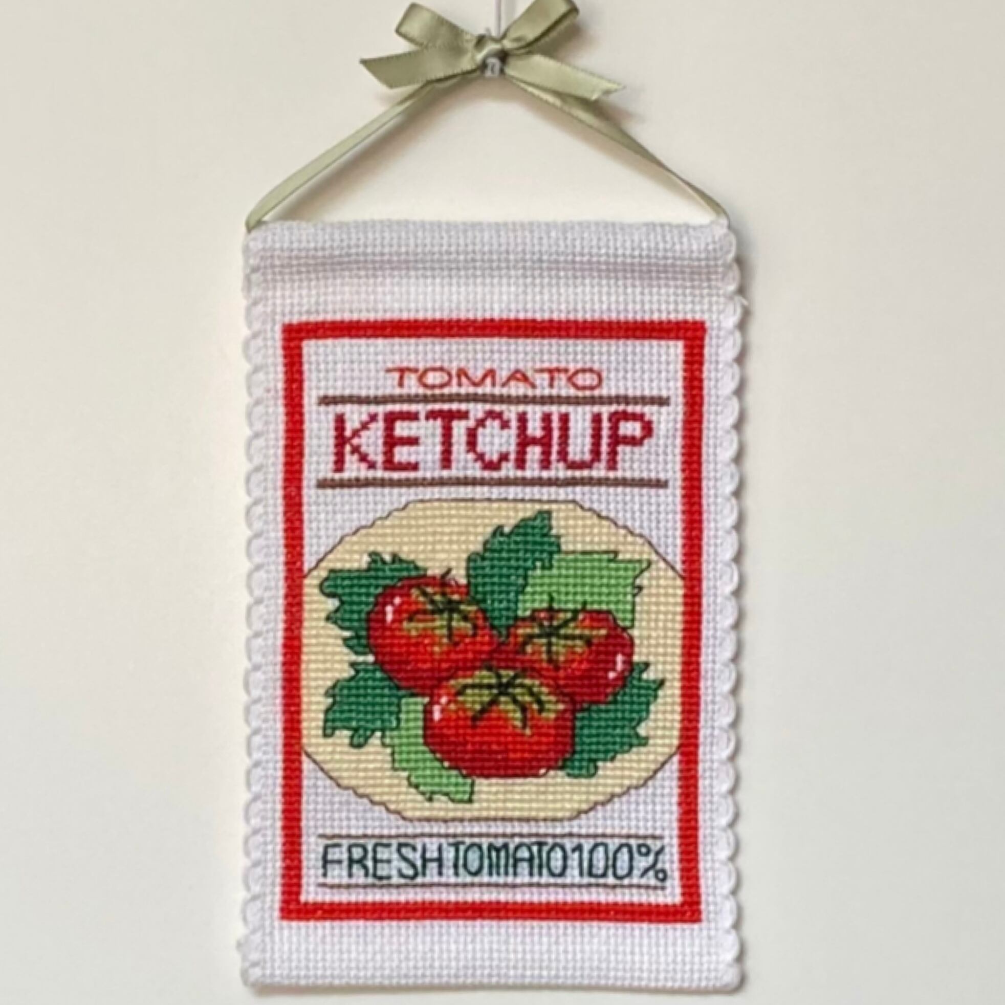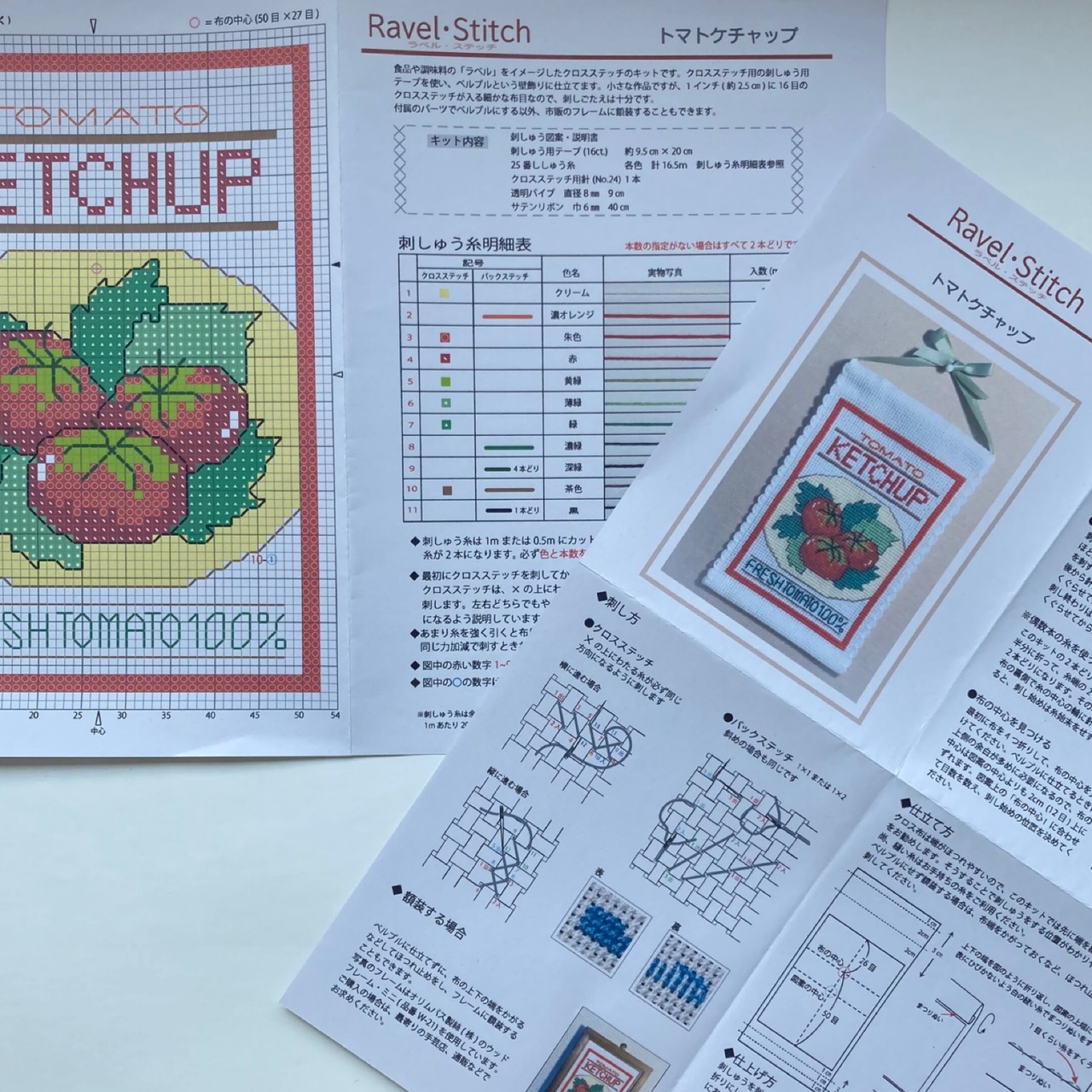 食品や調味料の「ラベル」をテーマにデザインした、クロスステッチのししゅうキットです。