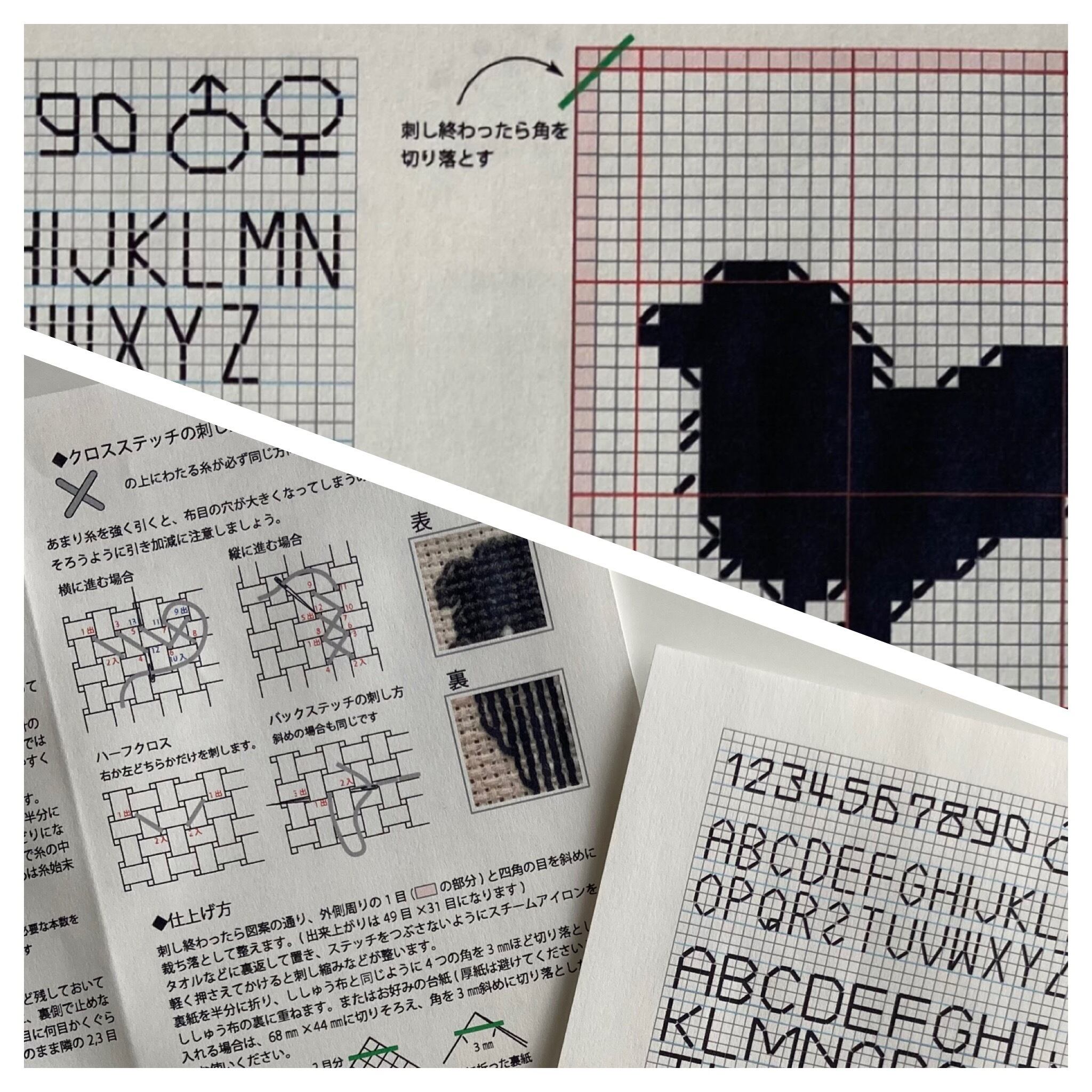 図案 1枚 (本体図案、刺し方説明、文字数字図案含む)