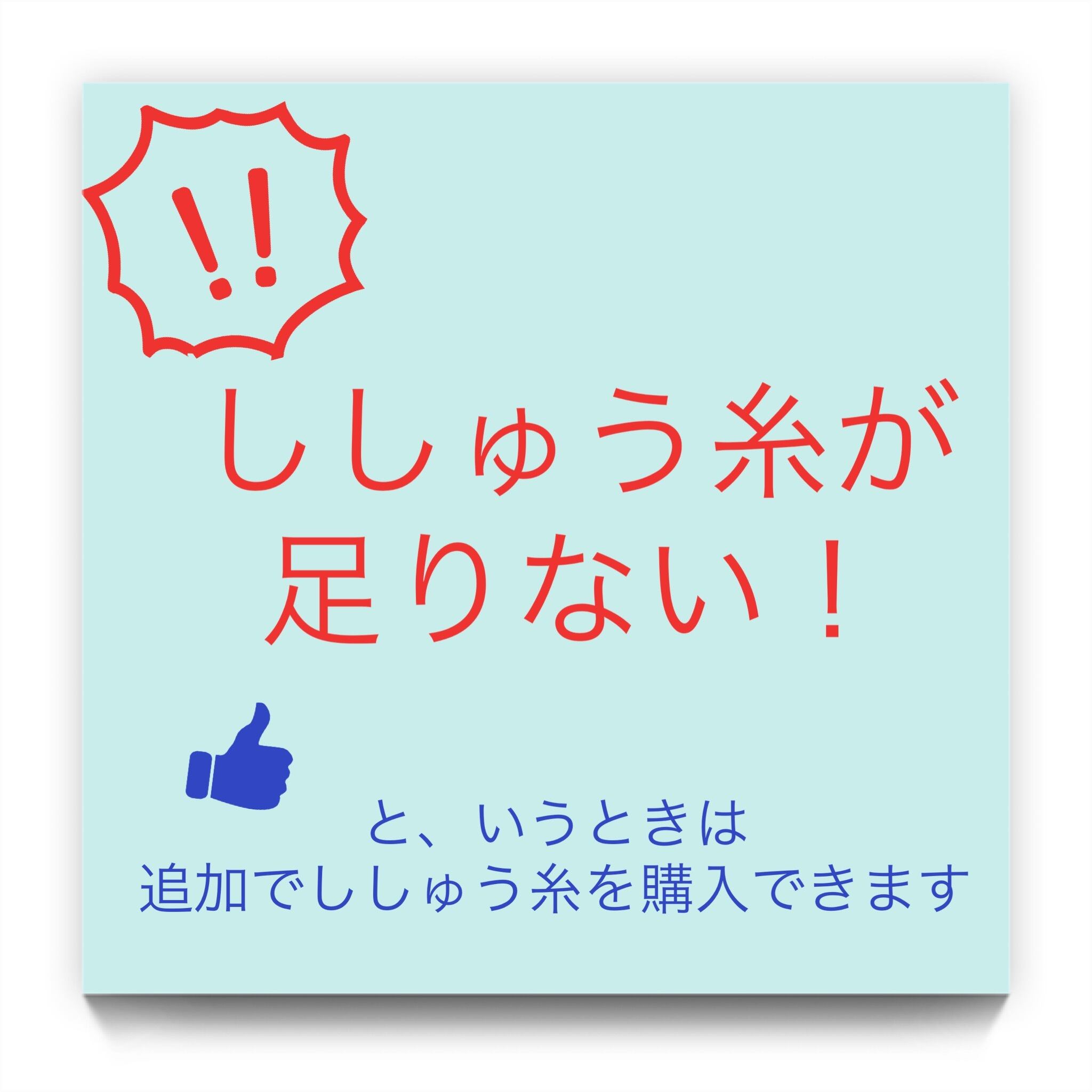 にっとも堂のししゅうキットで、ししゅう糸が不足したり、もう一度同じ図案を刺したい場合などに、キットに使用している糸に限り1メートル単位で販売します。キット内で使用量が0.5メートル1本となっている場合でも、追加としてお送りするのは1メートル1本でのお取り扱いとなります。