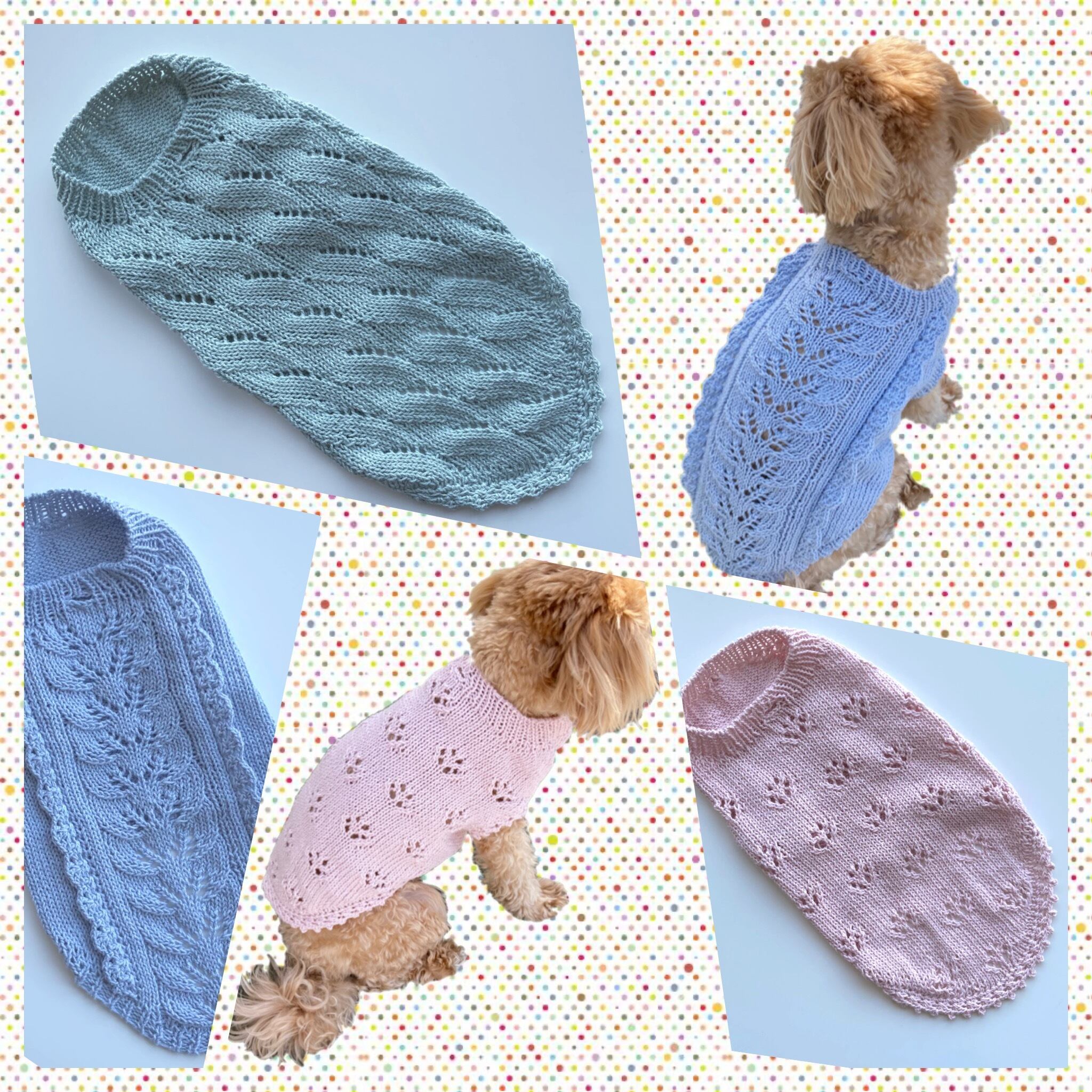 UVカット加工された綿糸を棒針で編み上げたわんこさん用のサマーニットです。とても柔らかな綿100%の細糸は薄手で軽く、心地良いとろんとした柔らかい肌触りです。